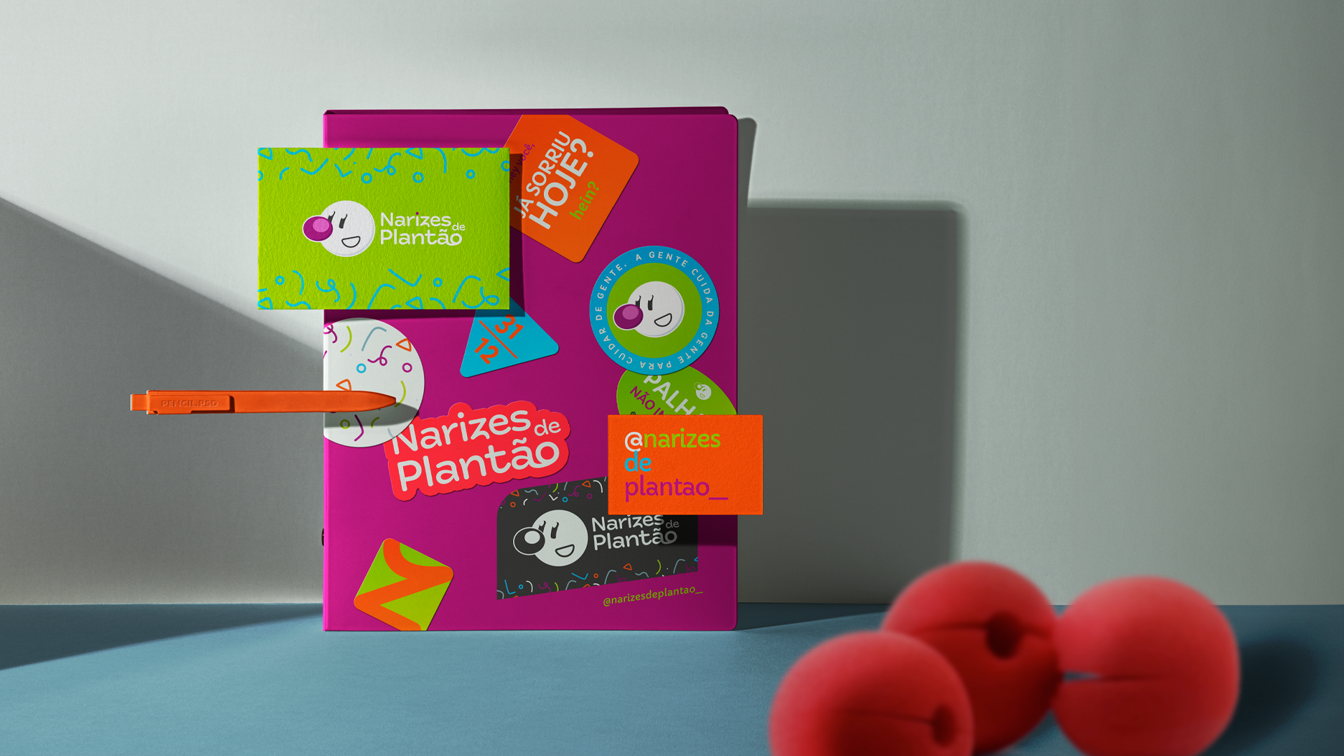 Desafio: Nesse projeto, o objetivo foi reformular a marca e a identidade visual dos Narizes de Plantão, um grupo de graduandos da área da saúde que, pela linguagem do palhaço, SUUUPER salvam o mundo em suas relações.
