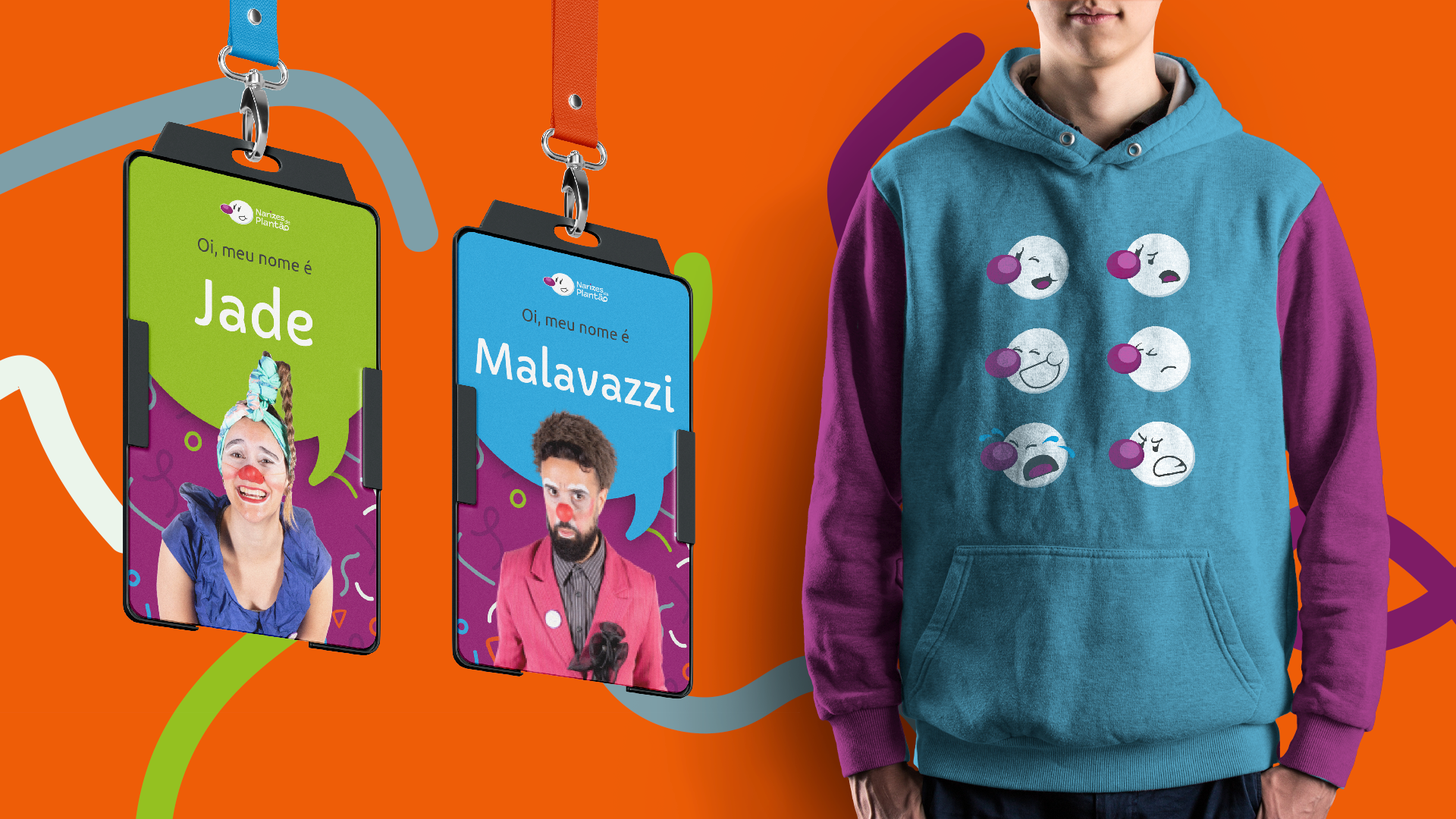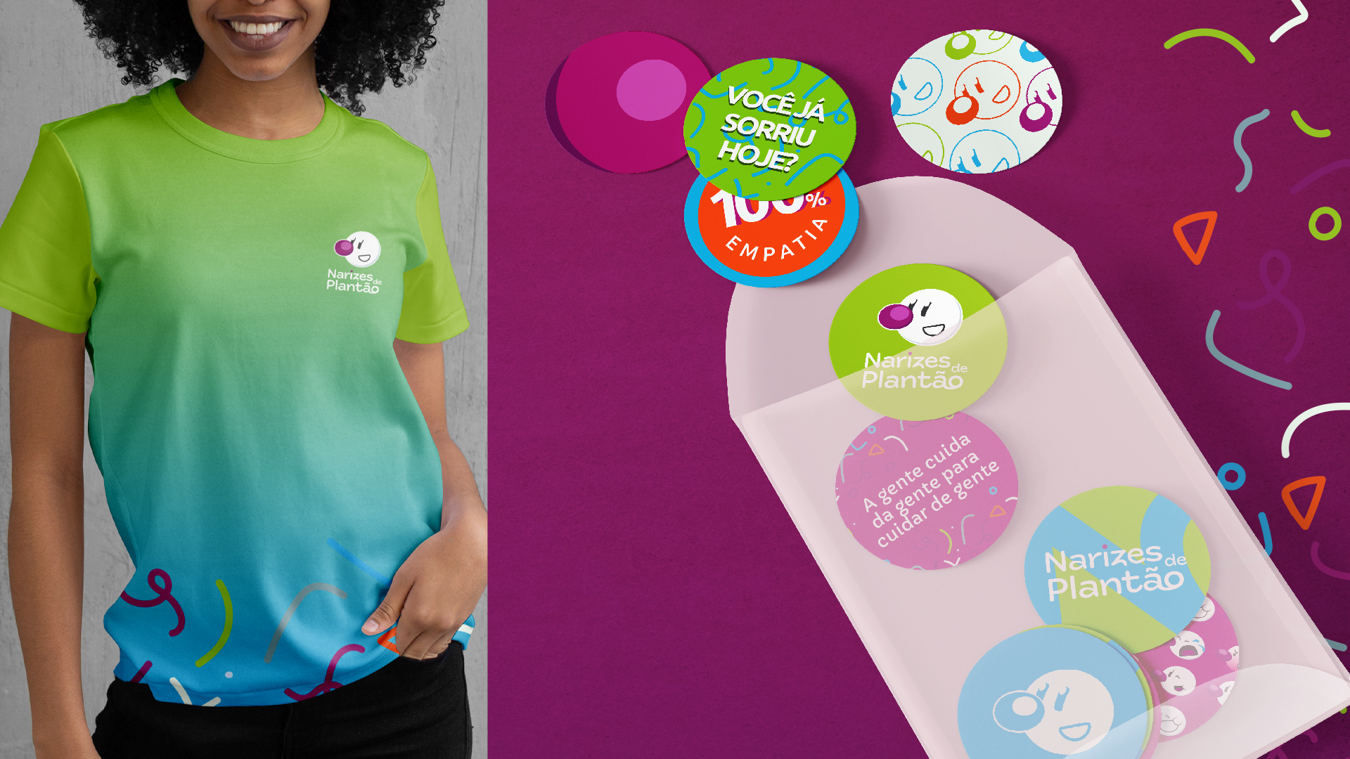 Challenge: In this project, the objective was to reformulate the brand and visual identity of Narizes de Plantão, a group of undergraduate health students who, through the language of the clown, SUUUPER save the world in their relationships.
